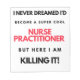 Nunca Soñé Que Me Convertiría En Una Enfermera Profesional De Super Guay Pero Aquí Estoy Matando El Diseño. Esta es una cita corta y divertida que es genial como una idea de agradecimiento para los enfermeros practicantes. También es adecuado como regalo de enfermera.