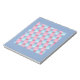 Un atractivo bloc de notas o una joteta, con un patrón de portada en tonos denim rosa y azul, de un diseño acuarela pintado a mano por Judy Adamson.
