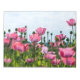 Este diseño presenta una hermosa imagen de un campo de cachorros rosados en flor. El color luminoso de las flores se ve increíble contra el cielo iluminado por el sol detrás.