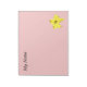 El diseño muestra la flor amarilla de un inflador de bombeo sobre un fondo rosa claro, con las palabras "Mis notas" encima del almohadilla. Puede cambiar fácilmente el color de fondo y añadir sus propias palabras haciendo clic en el botón "personalizar".