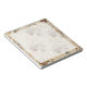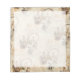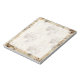 Billete de 5.5" x 6" con una imagen de viñetas marrones de todo lo que París sobre un fondo floral crema y marrón y un espacio de escritura transparente blanco. Vea toda la colección de Bloc de notas canas en los TOUCHES ESPECIALES | Sección de favoritos de partido.