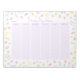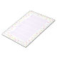 This pretty weekly planner features a floral watercolor design around the border with whimsical floating wildflowers in pretty shades of pastel pink, purple, blue, peach, lilac, and yellow. This notepad includes an undated weekly overview section in pastel purple that starts on Monday. This item can also be personalized with the name of the recipient, making it a great gift for her.