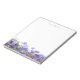 Esta libreta personalizada presenta una bella frontera de flores silvestres moradas con enfoque suave, que aporta un toque de naturaleza y serenidad a tus notas y listas diarias. El suave efecto bokeh y el fondo claro hacen que este diseño de papelería se sienta romántico y atemporal.
