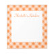 Un gingham naranja brillante decora este bloc de notas de estilo retro. Personalice este bloc de notas cambiando el texto. El diseño proviene de arte original.
