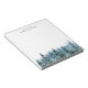 Bloc de notas de paisaje acuático simple con personalizable " de la mesa de " y plantillas de nombres. El borde inferior incluye una pintura acuática de pinos cubiertos de nieve.