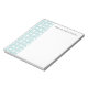 Baje notas y recordatorios con un Bloc de notas personalizado Verde azulado del patrón de círculo vicioso. El diseño del Bloc de notas presenta un estilo vintage, un banner lateral de patrón de círculo verde azulado y un espacio para personalizar su nombre. También hay artículos de papelería adicionales disponibles con este diseño. Si necesitas ayuda para la personalización, por favor contacta conmigo directamente.