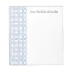Acompaña notas y recordatorios con un Bloc de notas personalizado del patrón de círculo azul. El diseño del Bloc de notas presenta un estilo vintage, un banner lateral de patrón de círculo azul y un espacio para personalizar su nombre. También hay artículos de papelería adicionales disponibles con este diseño. Si necesitas ayuda para la personalización, por favor contacta conmigo directamente.
