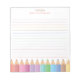 Abróchese en su aula con este alegre bloc de notas con la temática del arcoiris, personalizado con su nombre. Diseñado para notas rápidas, recordatorios o mensajes de los estudiantes, esta colorida papelería es un regalo reflexivo para los profesores, asistentes o padres que asisten a la escuela en casa. Un toque dulce y práctico para la Semana de Apreciación del Profesor o regalos de regreso a la escuela.