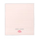 El moderno Beso de lápiz labial rojo rosado de Rubor está diseñado con líneas para mantener la nota más ordenada. Minimalista con un fondo rosa pastel y un beso rojo de moda ondulada en el centro inferior. El nombre está escrito en letras grises simples. HAGA CLIC EN PERSONALIZAR LA OPCIÓN PLANTILLA E INTRODUCIR EL NOMBRE.