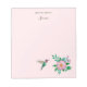 El personalizado de bonito notepad presenta un colibrí de Anna y un ramo de rosa salvaje sobre un fondo rosa claro.