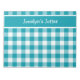 Un Notepad o Jotter personalizable con un patrón de gingham de comprobación verde azulada y blanca. Adecuado para el tamaño, este diseño también se ajustará a la nota más pequeña.