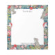 Perfecto para los amantes de los ratones y de los caprichos, este bloc de notas puede ser personalizado con un nombre para un aspecto personalizado. Los ratones del bosque de Woodland corren entre hojas, helechos y flores sobre un fondo azul verde azulado oscuro. También hay bayas y setas para cada ratón. Los verdes, los rosados y los verde azulados desprenden a los ratones grises. Dice "Desde el escritorio de" en la parte superior del área de notas blancas. Obra original de Tuzi Williams.