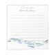 Personalice esta moda costera alineada con un cuaderno de notas con dos líneas de texto personalizado en escritura azul marino clásica y letras en serif. El diseño cuenta con una escuela de peces de color azul que nadan por el fondo. Se muestra con "desde el escritorio de [Nombre]".