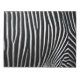 Este diseño presenta una fotografía de primer plano de las rayas blancas y negras sobre la piel de una cebra, creando un patrón muy atractivo. Las cebras son animales equinos africanos relacionados con caballos europeos. Tradicionalmente habitan diversos tipos de hábitats, como sabanas, praderas, bosques, arbustos y zonas montañosas de África meridional y oriental. Las franjas audaces y distintivas de las cebras las convierten en una de las más reconocibles de los mamíferos; por esa razón, han destacado de manera prominente en el arte y las historias de África y de todo el mundo.