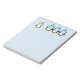 Bloc de notas de vacaciones con pingüinos con gorras y bufandas.