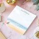 Abraza la tranquilidad de la costa con esta libreta personalizada. Una serena escena de playa, con olas suaves, arena suave y delicadas flores rosadas, adorna la parte inferior del diseño. La paleta de colores pastel crea un ambiente calmado y elegante. Agrega tu texto personalizado para hacer de esta libreta un accesorio único y práctico. Perfecto para anotar recordatorios, planes de día de playa o notas diarias.