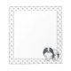 El original ilustracion personalizado de Destei de un lindo perro de raza Pomerania color abrigo negro y blanco. Los bordes del fondo tienen un patrón de huellas de perros grises mientras que el medio es blanco.