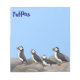 Los ataúdes descansan sobre las rocas. También aparece un texto en personalizable que dice "Puffins". El atlántico Puffin (Fratercula Arctica) se alimenta principalmente de un submarinismo en el agua. Se reproducen en grandes colonias en acantilados costeros o islas costeras en el Atlántico Norte. Los ataúdes se deshacen de las coloridas partes exteriores de sus facturas después de la temporada de reproducción, dejando un pico más pequeño y más suave. Sus cortas alas están adaptadas para nadar con una técnica de vuelo bajo el agua. En el aire, golpean sus alas rápidamente (hasta 400 veces por minuto) en vuelo rápido, a menudo volando bajo sobre la superficie del océano.