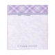 Pretty purple check pattern and a soft floral joined with a simulated ribbon with a blue buckle. Personalize with your name or message in matching font lettering.