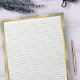 Páginas de tamaño de carta estándar - 8.5" X 11" con líneas marrones en cada página para escritura sencilla - Papel portátil de un lado con marco dorado y azul turbio y crema con acentos marrones fondo floral grande