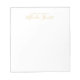 Bloc de notas moderno profesional con nombre en estilo de fuente de letra moderna en oro con texto personalizado en estilo de fuente sans serif moderna en oro sobre fondo blanco.