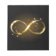 Oro, símbolo de infinito de joyas con estrellas doradas sobre fondo negro. Diseño con estrella dorada.