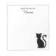 Tableta con una elegante silueta negra de gato en la esquina inferior derecha, sobre un fondo blanco. En la parte superior están las palabras "Desde el escritorio de" y su nombre está debajo en guión. Un bloc de notas personalizado es un gran regalo de agradecimiento para los clientes y también es perfecto para los profesionales de negocios como un veterinario, profesor, abogado, amante de los gatos y más.