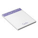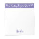 Papelería personalizada para chicas con corazones dibujados a mano y fuente de escritura de pincel. En morado y blanco.