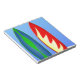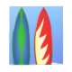 con un diseño fresco de dos tablas de surf de colores vivos sobre una playa. Estas tablas de surf son de estilo clásico retro y recuerdan a un verano brillante, un día soleado en la playa. Un gran diseño para los amantes de la playa y del surf.