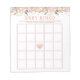 Bloc de notas de juego de bingo para baby shower de niña con flores de acuarela rosadas y doradas y fondo de puntos. Puedes agregar texto para personalizar.