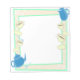 Billete de 5,5" x 6" con una imagen de un marco de fiesta de té azul y verde con una tetera azul y una jarra de picor y unas teacups y platillos amarillos. Vea toda la colección de Wonderland Notepad en los TOUCHES ESPECIALES | Sección de favoritos de partido.
