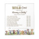 ¡Es gracioso, lindo, un poco salvaje está en camino! Tema safari, jungla, tropical, juegos y actividades de duchas para bebés, con ilustracion de lindos bebés, elefante, búfalo, rinoceronte, león, cebra, jirafa, hipopótamo y chita. Puedes personalizar este moderno juego de ducha de bebé lindo "Adivina quién" con tu propio texto.