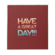 Este diseño que dice "¡¡¡¡¡¡TENGAN UN GRAN DÍA!!!!" en negrita, con letras mayúsculas. A "Día" le siguen tres signos de exclamación. Este diseño es una divertida toma del dicho común "¡¡¡¡Que tengan un gran día!!!" y los tres signos de exclamación envían un mensaje de emoción. El tipo de letra negrita garantiza que el mensaje es claro y fácil de leer. Este diseño sería una gran manera de difundir positivismo y hacer sonreír a la gente.