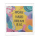 Una nota elegante y minimalista con la inspiradora frase "Work Hard Dream Big" en una tipografía audaz y moderna. Ideal para el registro diario de transacciones o la configuración de objetivos.