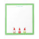 Tres gnomos modernos y agradables con regalos con marco verde simple Notepad. El texto se puede personalizar. ¡Genial para niños y adultos!