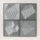 Cuatro mazas con fondo negro, blanco y gris son un diseño divertido para los amantes del rompecabezas.