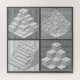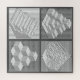 Cuatro máscaras contra un fondo con motivos negros, blancos y grises es un divertido rompecabezas en un regalo de rompecabezas para cumpleaños y vacaciones.
