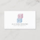 Los bloques de bebés rosas y azules presentan sus iniciales como un logo llamativo en esta plantilla clásica de tarjetas de visita para niñeras, guarderías, niñeras y tiendas para niños. © 1201AM CREATIVE