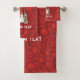 Un vaso de cóctel Bloody Mary sobre fondo oscuro rojo sin costuras. Texto personalizado.
