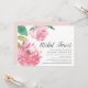 La invitación a la ducha nupcial de moda incluye ilustraciones florales de color melocotón en un rosa vibrante, acentuado con hojas verdes exuberantes. Personalice los detalles de la ducha de novia alineados a la derecha. Las tarjetas se revierten a rosado rubio sólido.