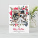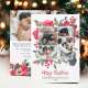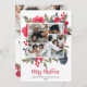 Prepárate para jugar al juego de cartas de vacaciones con nuestros Modern Simple 5 Fotos Navidades Saludo! No es sólo una tarjeta, es una pequeña galería de los momentos familiares favoritos con un marco acuático pintado a mano adornado con una elegante mezcla de flores rojas, suaves tonos azules polvorientos y ramas verdes de pino. Esta carta, de color negro, blanco y rojo, es una mezcla festiva de estilo y sentimiento. ¡Difunde alegría con un toque de su único sabor familiar!