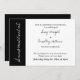 Una carta sencilla y moderna para avisar a los clientes si es necesario cambiar de fecha de boda. Utilice los campos de plantilla para añadir sus datos personales y hacer de este diseño único y moderno su propio diseño. Un bloque de color a lo largo de la izquierda se estableció como negro para coincidir con el texto y la parte posterior de la tarjeta; aparece "Invitación" sobre esta tira a la izquierda. También se pueden editar todos los tipos de letra y colores. Por favor, contacte con cualquier solicitud especial o para personalizar la asistencia. En la colección se encuentran disponibles otras piezas con una redacción alternativa.