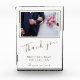 Un favor de boda bloque de fotos con una foto de boda personalizable, nombres y fecha de boda. Un elegante y sofisticado bloque de fotos de agradecimiento - ideal como regalo para sus invitados. "Gracias" en una fuente de escritura moderna y mensaje de agradecimiento personalizado. Agregue su foto de boda favorita en la plantilla.