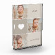 Celebre los momentos más dulces de su bebé con este bloque de fotos personalizado, diseñado solo para usted. Con tres de sus fotos de bebé favoritas dispuestas en un collage de tonos suaves y neutros. Un símbolo de corazón añade un toque cariñoso, mientras que el nombre y la fecha de nacimiento de su bebé lo hacen verdaderamente personal. Perfecto como recuerdo para padres, abuelos o como decoración para el cuarto del bebé.