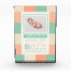 Celebre la llegada de su pequeño con este bloque de vidrio para fotos personalizadas con estadísticas de nacimiento. Hecho de vidrio, presenta un estilo similar a una colcha en verde espuma de mar y salmón. Agregue el nombre de su bebé, fecha de nacimiento, peso, longitud y hora de nacimiento para crear un recuerdo que será significativo y especial. Personalice con su foto favorita de recién nacido para crear un diseño único que es perfecto para la guardería. Este bloque de fotos personalizado también es un regalo considerado para padres nuevos, reuniones de presentación del bebé o bautizos.