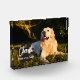 Simplemente agregue su foto y nombre de mascota a este encantador bloque de fotos conmemorativas de mascotas.