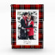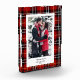 Bonito fondo revestido con dos colores blanco y rojo para que puedas elegir el que prefieras. Foto personalizado en el centro de un portafoto rectangular blanco con monogramas en elegante letra serif
