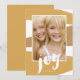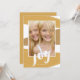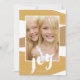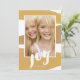 Un diseño contemporáneo de bloques de colores en tonos dorados festivos incluye un mensaje de alegría con letras a mano en esta moderna tarjeta fotográfica de vacaciones.