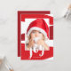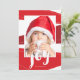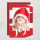 Un diseño contemporáneo de bloques de colores en rojo y blanco festivo incluye un mensaje de alegría con letras a mano en esta moderna tarjeta de fotos de vacaciones.
