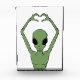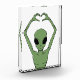 Vivid green alien forming a heart with arched arms against black, blending sci-fi whimsy with playful charm. Bold contrast, perfect for space fans and quirky casual outfits.
